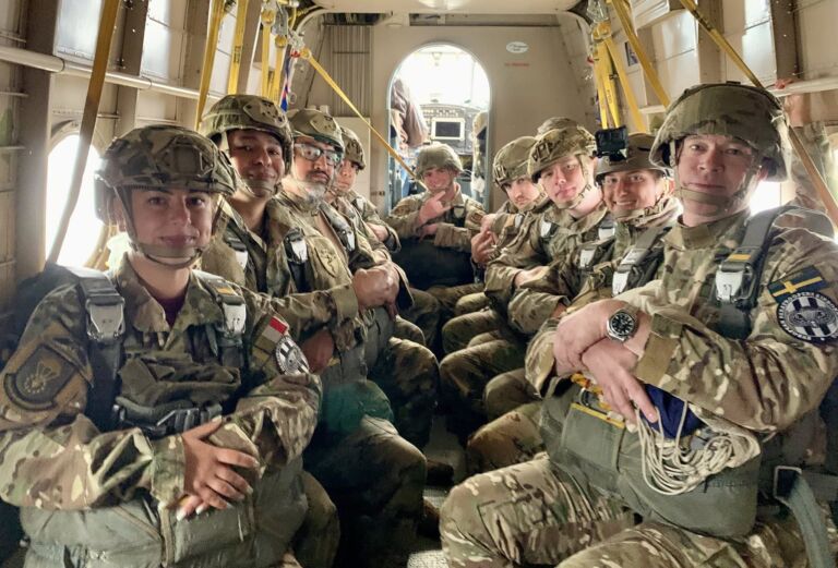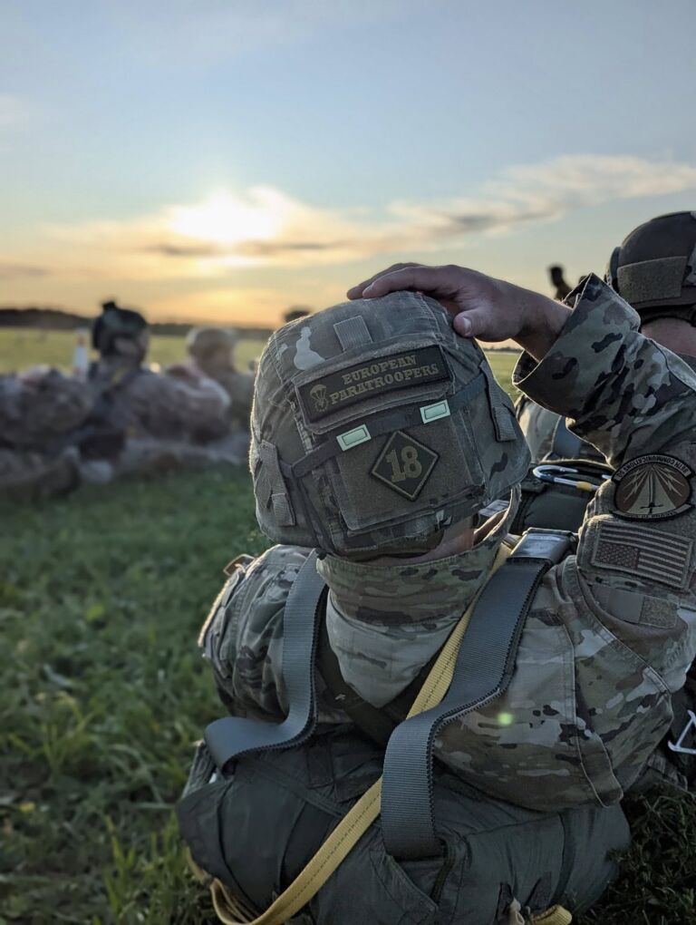 The European Paratroopers Basic Airborne Course is a true military round canopy static line parachute jump training course designed to give our members, who are not yet airborne qualified, the opportunity to qualify as military parachutists and earn the coveted airborne wings.