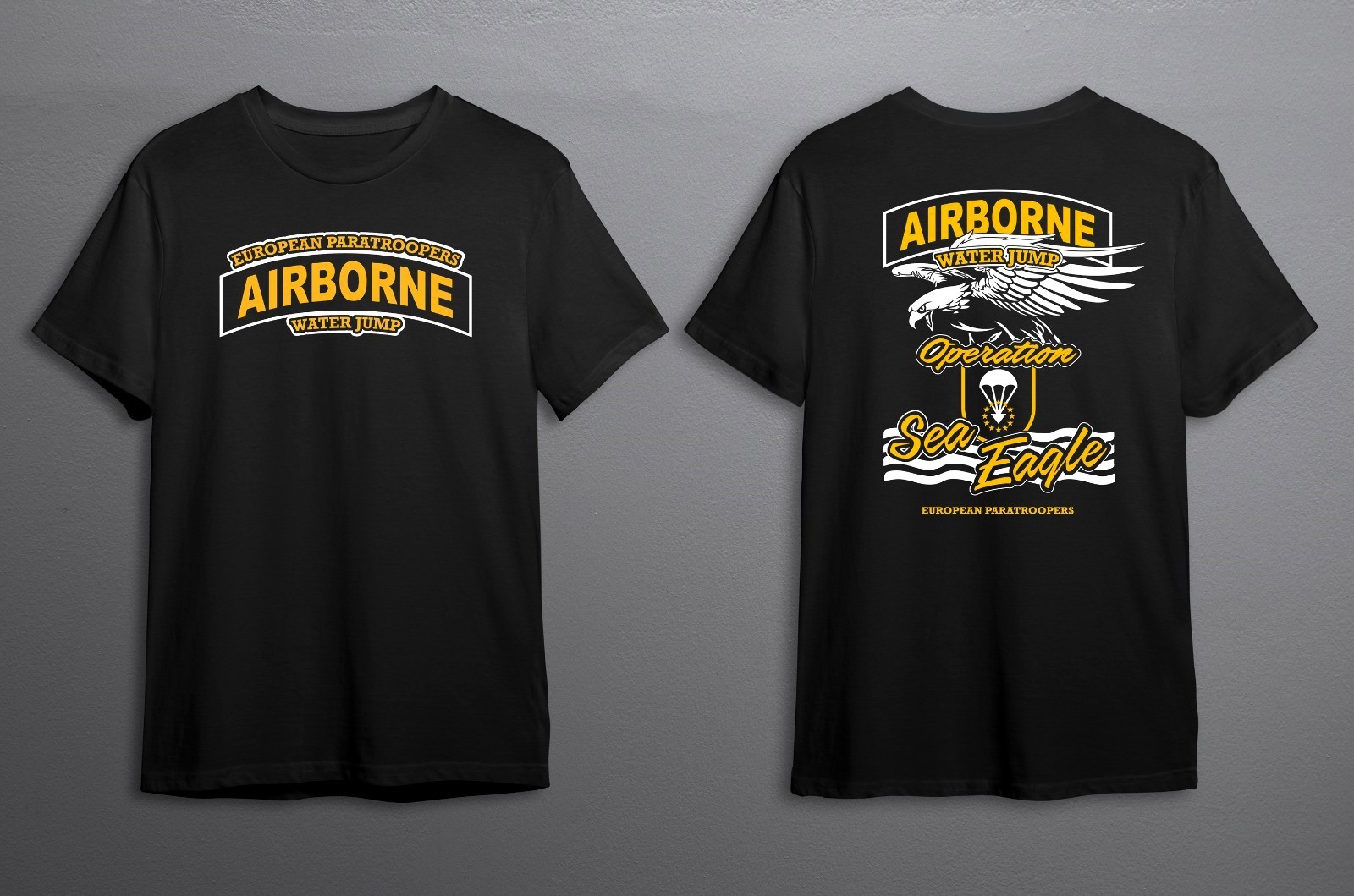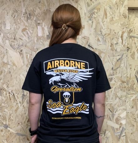 Black T-Shirt - Two colour print (Yellow and White) on front and back side. Available now in preorder at [email protected]. Please note that we will be issuing all 1st Operation SEA EAGLE jumpers with a FREE T-Shirt.