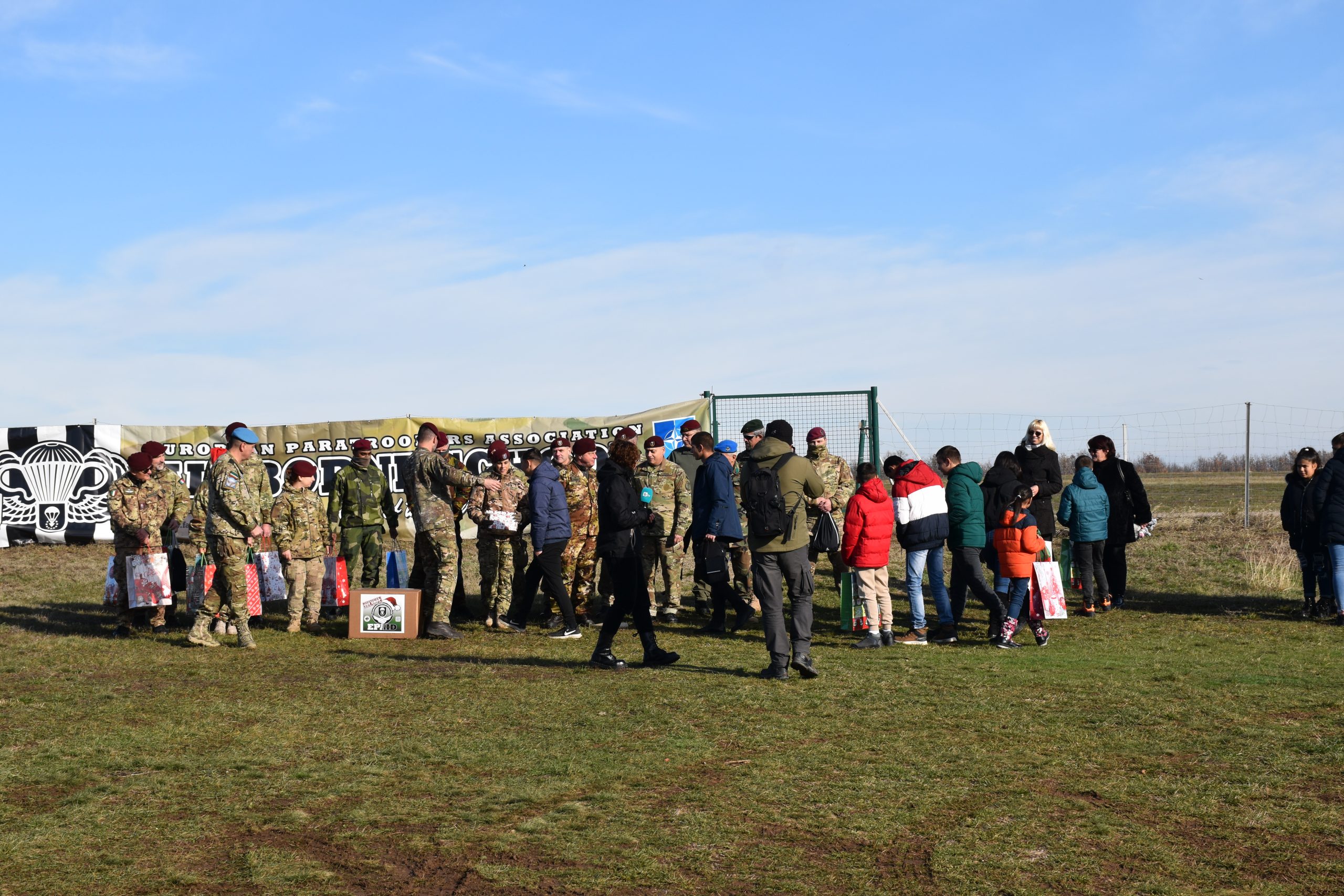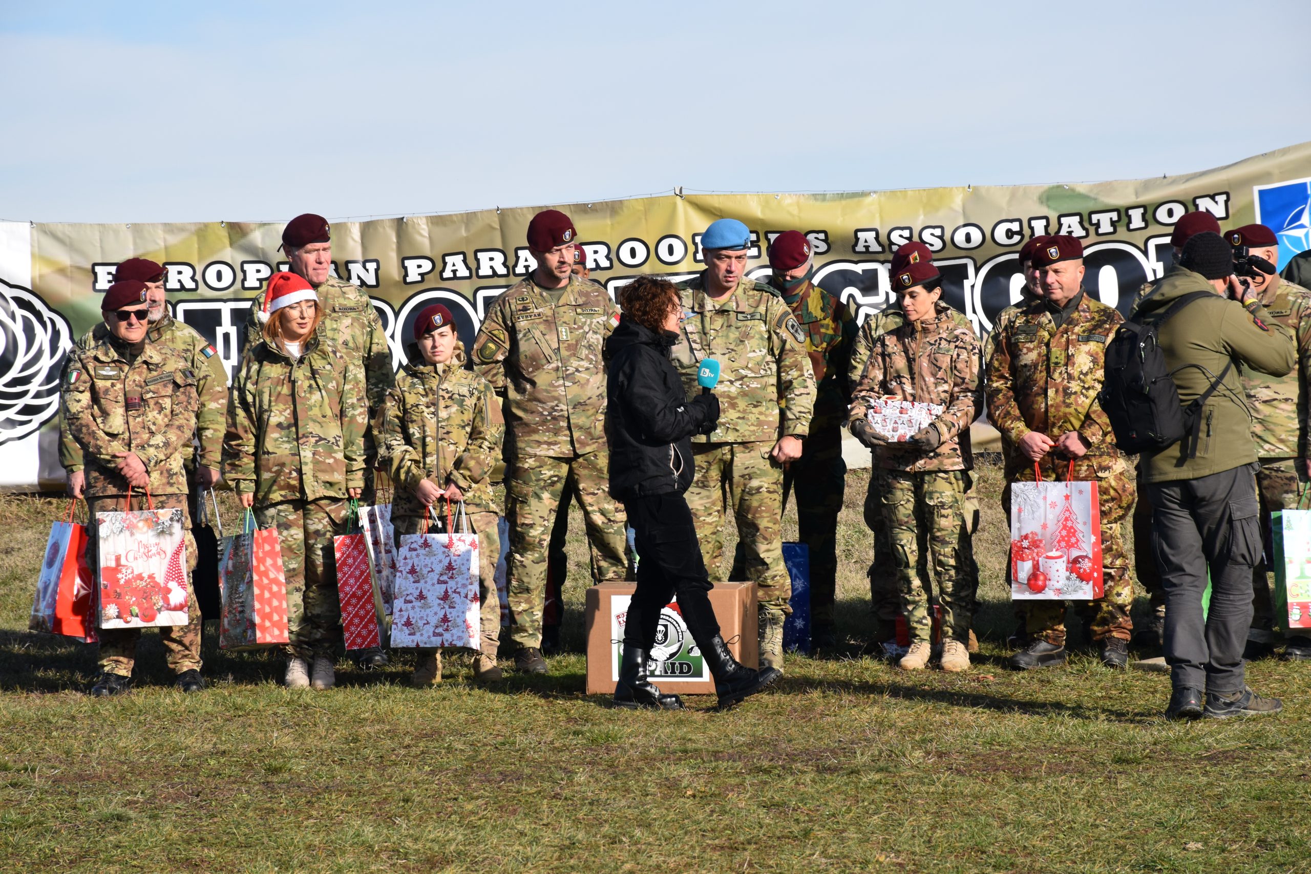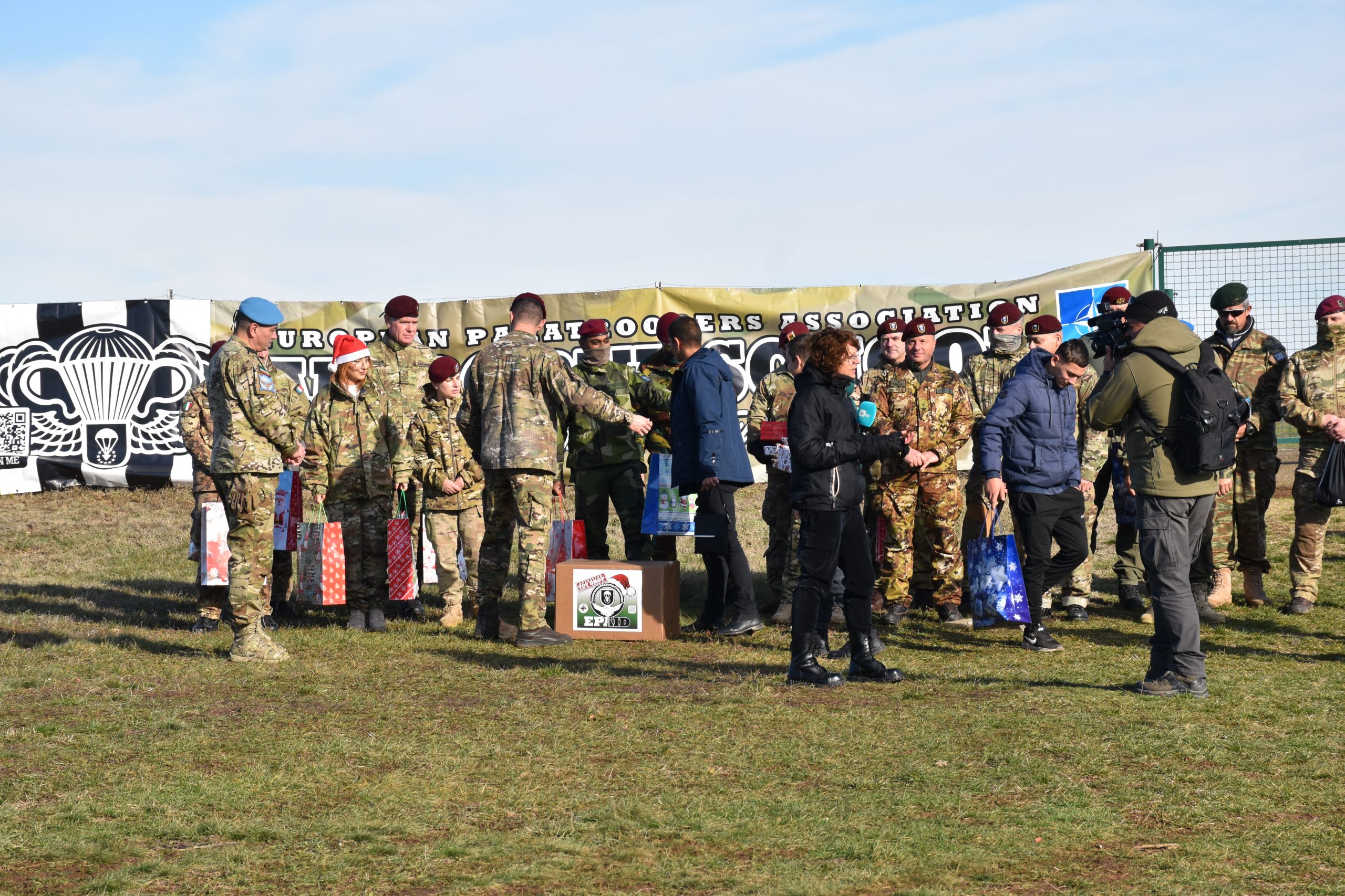 Toy Drop Charity - Bulgaria 2023 was successfully accomplished! A big supply of sport and clothing items for a value of over 3500 Euros was delivey to the Montana Family Center in Bulgaria, and on Monday 18th twenty young guests of the Family Center visited the European Paratroopers Airborne School in Erden and received gifts from our members coming from many European countries United States Canada